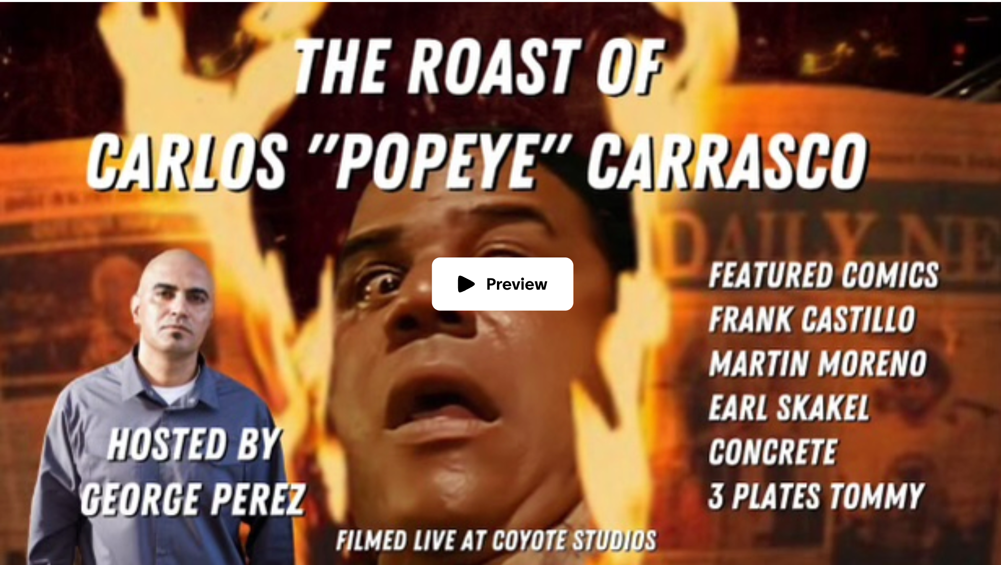 Filmed before a live audience at Coyote Studios in East Los. A scathing takedown of Popeye Saavedra orchestrated by George Perez aided and abetted by his fellow comics Concrete, Frank Castillo, Martin Moreno, 3Plates Tommy and Earl Skakel and hosted by Vyal One. No respect was shown. A full hour of embarrassment. It was brutal and Popeye almost lost his chones. Check it out with your carnales.